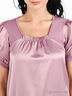 Детали: вырез "каре", атласные рукава с трикотажными манжетами, атласная вставка на передней части изделие, низ изделия посажен на манжету