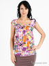 Детали: округлый вырез горловины с многорядной резинкой, короткий рукав, принты, низ изделия посажен на манжету