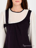 Детали: круглый вырез; длинный рукав на резинке и вставка на полочке из тонкого контрастного шифона; низ изделия на трикотажной резинке