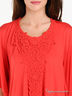 Детали: круглый вырез; короткий цельнокроеный рукав; оригинальный крой; завязывается сзади; декорирована ажурной вязанной вставкой