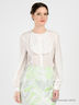 Лёгкая однотонная блузка из 100% шёлка, с округлым вырезом горловины и декоративным элементом - "жабо". Рукава длинные, на манжете с пуговицей. Спереди блузки располагается застёжка на пуговицы. Идеальным дополнением к блузке станет юбка Н-162-09.