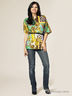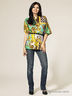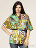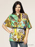 Легкий блузон свободного силуэта. Выполнен из приятного на ощупь материала. Овальный вырез горловины. Широкие короткие цельнокроеные рукава. Талия подчеркнута ремнем. Оригинальный узор. Модель прекрасно сочетается с однотонными брюками и джинсами!