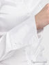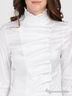 Эффектная блуза приталенного силуэта выполнена из шелковистой неэластичной ткани. Ворот-стойка декорирован оборкой, длинный прямой рукав с манжетой на двух пуговицах, двойная застежка на пуговицы. Отличный вариант для офиса!