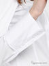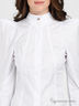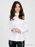 Оригинальная блуза приталенного силуэта выполнена из батиста. Двойной ворот-стойка оригинального кроя, застежка на пуговицы, длинный рукав с высокой манжетой на пяти пуговицах декорирован складками по окату. Отлично сочетается с классическими брюками.