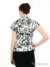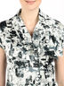 Женственная приталенная блузка с активным принтом. Короткие рукава. Застегивается на пуговицы.