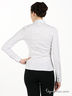 Классическая женственная блуза белого цвета. Отложной воротник на стойке. Застегивается на пуговицы. Длинные рукава с манжетами на пуговицах. Талия декорирована защипами.