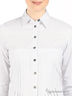 Классическая женственная блуза белого цвета. Отложной воротник на стойке. Застегивается на пуговицы. Длинные рукава с манжетами на пуговицах. Талия декорирована защипами.