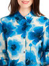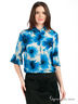 Детали: отложной ворот-стойка, укороченный рукав с оборкой, застежка на пуговицы, принты