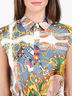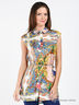 Детали: отложной ворот-стойка, без рукавов, застежка на пуговицы, креативный принт