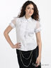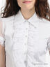 Детали: отложной ворот, застежка на пуговицах, рукав фонарик из отделочной такни, блуза декорирована рюшами.
