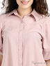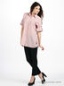 Детали: отложной ворот, рукав 2/4 завернут хлястиком на пуговице, застежка на пуговице.