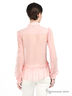 Детали: отложной воротник-стойка, длинные рукава с манжетами на пуговице, украшена многослойными рюшами