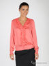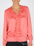 Блуза прямого кроя из шелковой ткани. Рюша по контуру V- образного выреза и вдоль пуговиц. Длинные рукава. Резинка по контуру рукавов и внизу изделия.