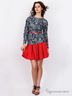 Блузка приталенного силуэта, отрезная талия с баской. Длинный рукав украшен декоративными полукругами вдоль длины рукава. Застежка сзади на молнии. Модель будет удачно гармонировать с различными элементами гардероба.