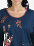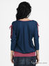 Детали: круглый вырез, укороченные рукава с оригинальными разрезами на веревочке, полочка украшена оригинальным набивным рисунком