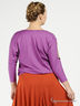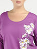 Детали: круглый вырез, укороченные рукава с оригинальными разрезами на веревочке, полочка оригинально украшена объемными цветами