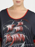 Детали: круглый вырез, короткие рукава с оригинальными разрезами на веревочке, полочка украшена оригинальным ярким принтом
