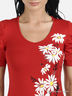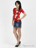 Детали: v-образный вырез, короткие рукава-фонарики, полочка украшена оригинальным набивным рисунком
