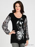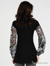 Детали: округлый вырез горловины, длинный рукав присборен на резинку, полочка декорирована росписью