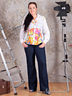 Детали: отложной ворот; длинный рукав с манжетой; застегивается на пуговицы; декорирована вставками с ярким принтом