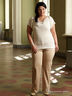 Повседневная блуза слегка приталенного силуэта. Вырез горловины "качели". Короткие ниспадающие рукава.