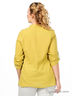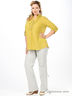 Детали: отложной воротник, застежка на пуговицы, длинный прямой рукав присборен на манжету с двумя пуговицами, полочка и спинка декорированы перфорацией