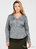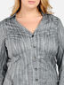 Детали: отложной ворот, V-образный вырез горловины, застежка на пуговицы, вытачки, декоративные элементы, принты