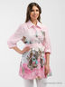 Замечательная блуза с рукавами 3/4 и отложным воротником. Спереди застежка на пуговицах. Отдельно - шарфик, украшенный по краю ажурным кружевом. На рукаве и снизу по бокам застежка - клапан регулирует длину. Блуза оформлена нежным цветочным принтом. Модель подчеркнет Ваш изысканный вкус и стиль. Отличный вариант на каждый день.