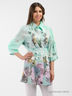Замечательная блуза с рукавами 3/4 и отложным воротником. Спереди застежка на пуговицах. Отдельно - шарфик, украшенный по краю ажурным кружевом. На рукаве и снизу по бокам застежка - клапан регулирует длину. Блуза оформлена нежным цветочным принтом. Модель подчеркнет Ваш изысканный вкус и стиль. Отличный вариант на каждый день.