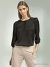 Стильная блуза с рукавами 3/4 и округлым вырезом горловины. Спереди присутствует декоративный элемент. Отличный вариант на каждый день.