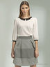 Стильная блуза с рукавами 3/4 и округлым вырезом горловины. Модель выполнена из качественной ткани привлекательной расцветки. Горловина декорирована контрастным по цвету воротничком. Отличный вариант на каждый день.