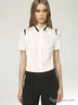 Блуза с короткими рукавами и отложным воротником. Модель приталенного кроя подчеркивает достоинства фигуры. Спереди изделие дополнено застежкой на пуговицы. Отличный вариант на каждый день.