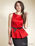 Блуза с короткими рукавами и округлым вырезом горловины. Модель приталенного кроя дополнена поясом на талии. Отличный вариант для создания модного, повседневного образа.