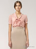 Блуза с короткими рукавами и воротником-стойкой. Изделие выполнено из качественного, полупрозрачного материала привлекательной расцветки. Спереди модель дополнена бантом. Отличный вариант на каждый день.
