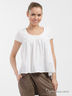 Замечательная блуза скороткими рукавами и округлым вырезом горловины. Модель свободного кроя, оформлена складками на груди. Прекрасный вариант на лето.