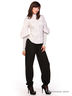 Эффектная приталенная блуза с воротом-стойкой и застежкой на пуговицы. Длинный объемный рукав с длинной облегающей манжетой. Рельефные вытачки. Будьте стильной и женственной.
