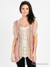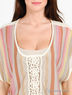 Детали: округлый вырез горловины, короткий рукав, полочка декорирована люрексом и вставкой из кружевного шитья