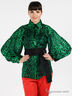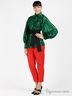 Детали: отложной ворот-стойка, застежка на пуговицы, объемные рукава посажены на манжеты на пуговицах, в комплекте широкий пояс-лента