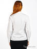 Детали: ворот-стойка; длинный рукав с манжетой; застегивается на пуговицы; декорирована простроченными складками и небольшими оборками