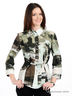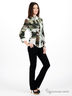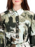 Детали: отложной ворот; рукав 3/4 дополнен хлястиком, фиксирующим рукав в коротком положении; по талии пущена кулиска с тонким пояском; оригинальный принт