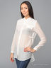 Блузка - практичная и стильная вещь на каждый день. Модель с длинными рукавами и воротником стойка свободного покроя. Дополнена застежкой на пуговицы и накладным декоративным карманом.