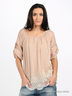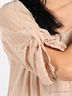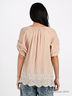 Романтичная и женственная блузка из воздушного материала с добавлением натурального шелка. Круглая горловина. На полочке планка-застежка на пуговицах. Длинные рукава реглан с хлястиком на перламутровой пуговице. Декорирована белой вышивкой и перфорацией.