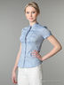 Детали: ворот-стойка, застежка на пуговицы, короткий прямой рукав, полочка декорирована драпировкой
