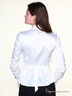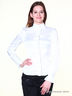Детали: ворот-стойка, застежка на пуговицы на полочке, длинный рукав, полочка и манжеты декорированы оборками
