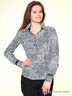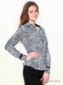 Детали: отложной ворот-стойка, застежка на пуговицы на полочке, длинный рукав, манжеты на пуговице, принты