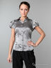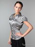 Детали: отложной воротник, короткий рукав-фонарик, застежка на пуговицы