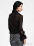 Оригинальная блуза приталенного силуэта из тонкого креп-жоржета с креш-эффектом. V-образный вырез горловины, длинны рукав с манжетой, спереди завязки. Декорирована оригинальными рюшами. Отлично подходит для праздников и торжеств.