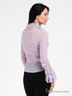 Оригинальная блуза приталенного силуэта из тонкого креп-жоржета с креш-эффектом. V-образный вырез горловины, длинны рукав с манжетой, спереди завязки. Декорирована оригинальными рюшами. Отлично подходит для праздников и торжеств.