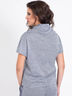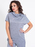 Блуза прямого силуэта с высоким цельнокроеным воротником-стойкой. Спинка со средним швом. Рукав короткий, цельнокроеный. Длина изделия с воротником 72см.