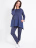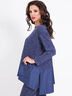 Блуза трапециевидного силуэта, разноуровневая, отрезная по линии бедер,с навесными карманами по переду, с разрезами в боковых швах. Рукав втачной, длинный, горловина круглая. Нижняя часть переда и спинки, навесные карманы - из тонкой плащевой ткани в тон основного сырья.